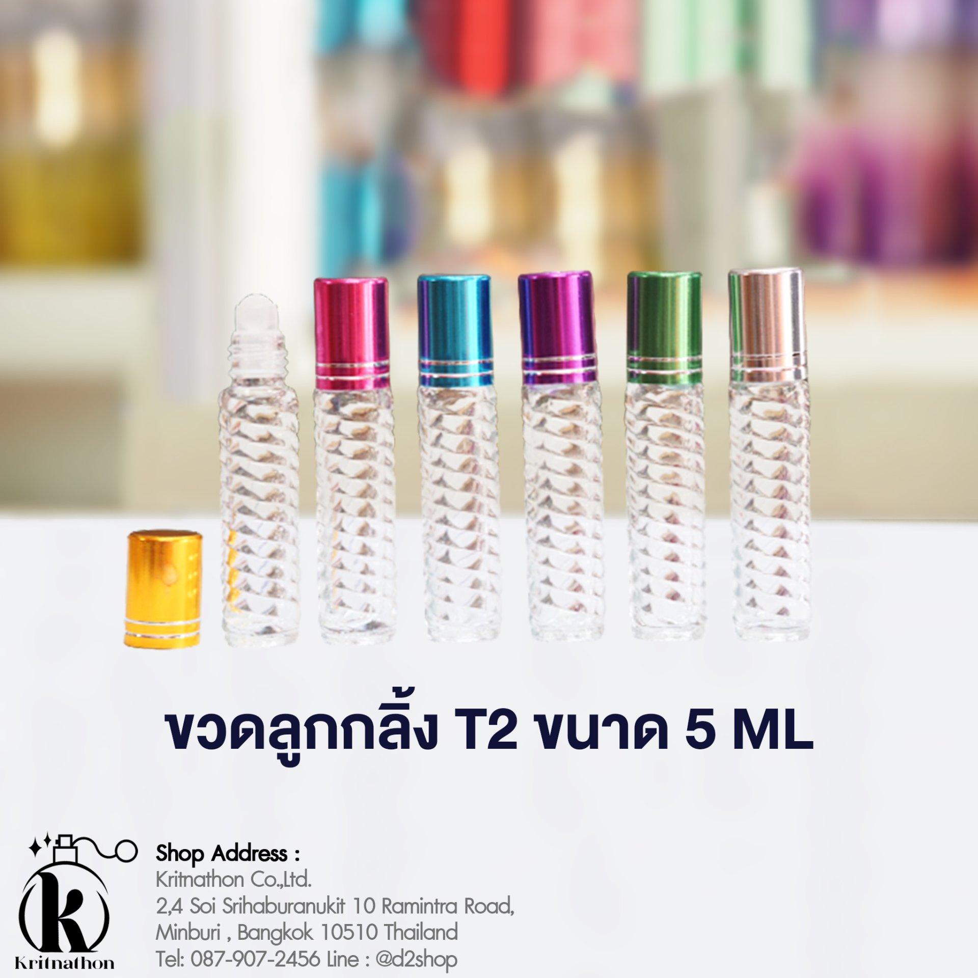 ขวดลูกกลิ้งฝาคละสี (T2) ขนาด 5 ML