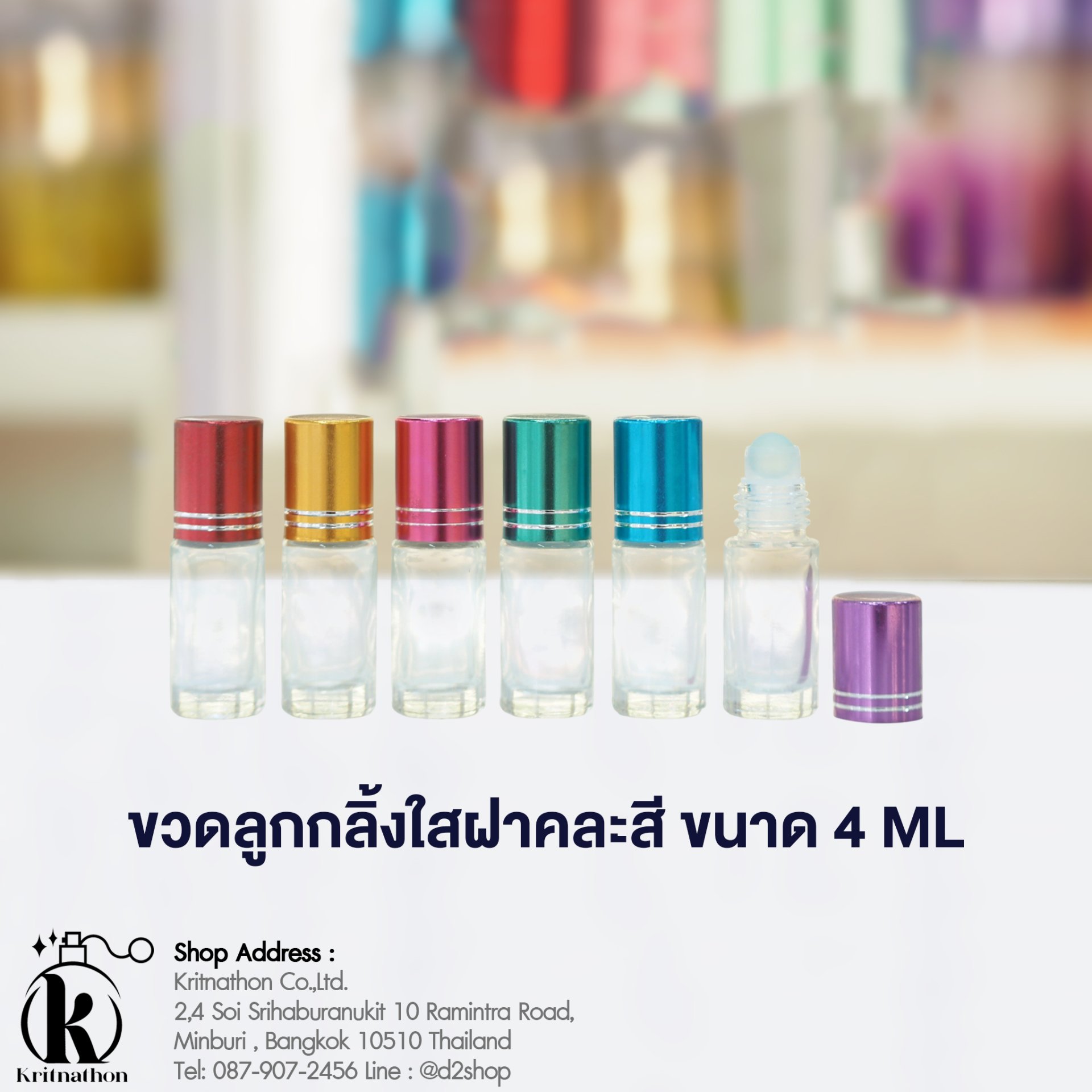 ขวดลูกกลิ้งกลมใสฝาคละสี ขนาด 4 ML