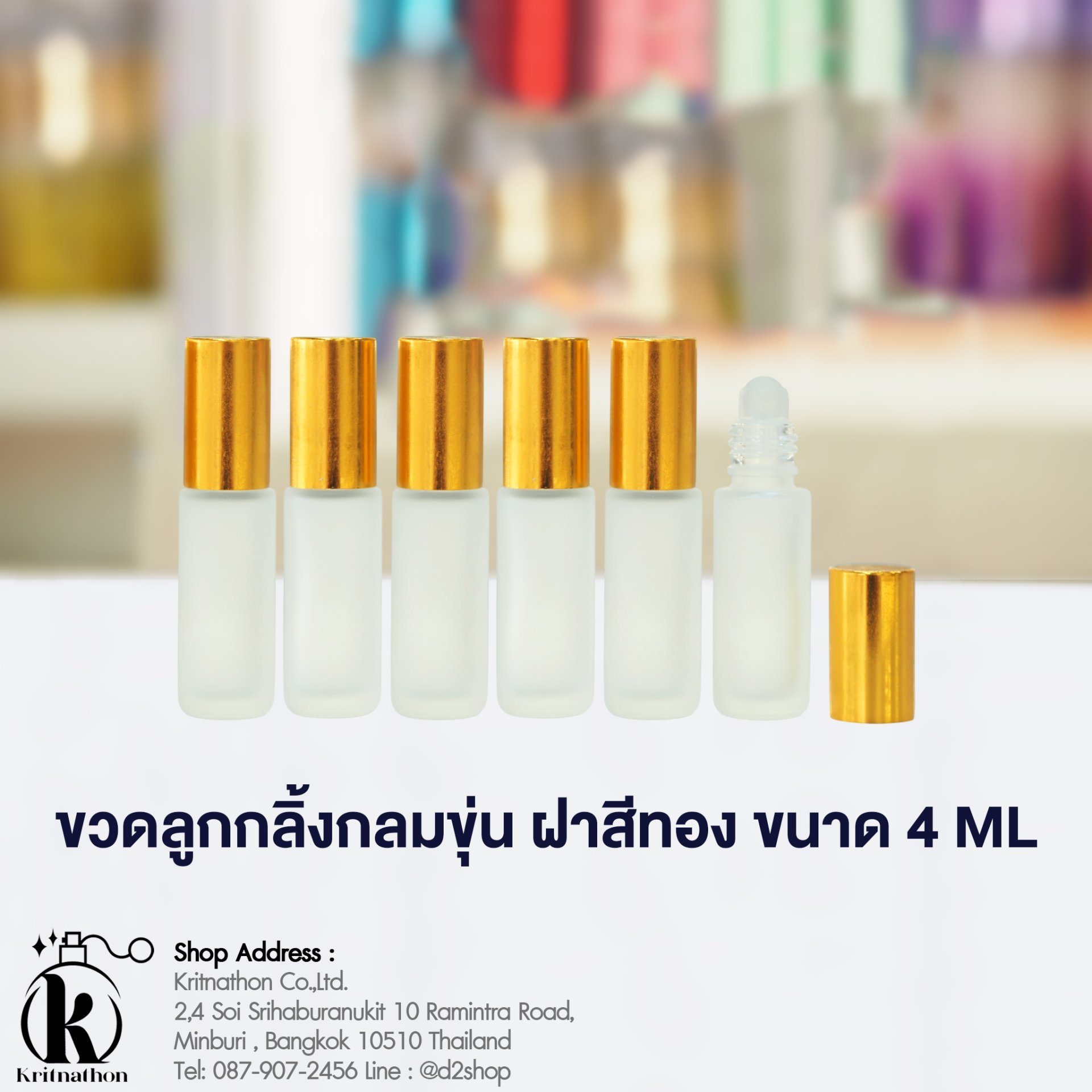ขวดลูกกลิ้งกลมขุ่นฝาสีทอง ขนาด 4 ML