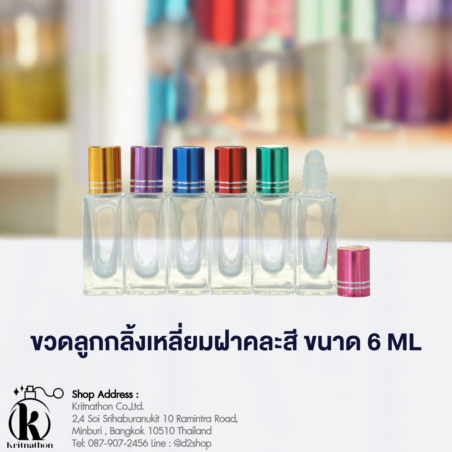 ขวดลูกกลิ้งเหลี่ยมฝาคละสี ขนาด 6 ML