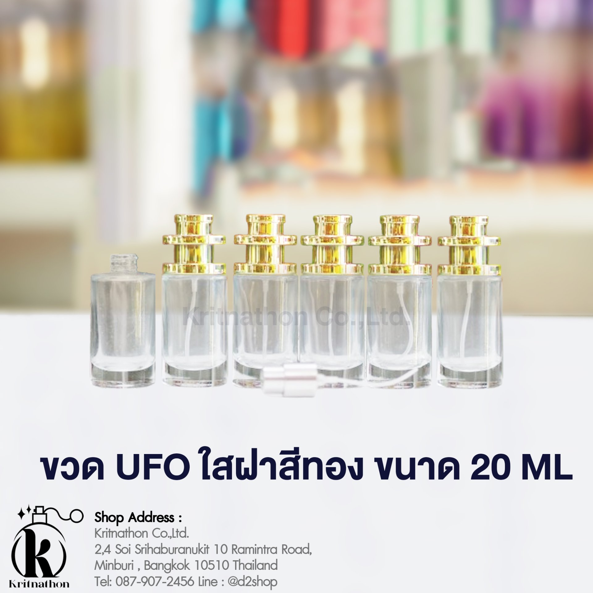 ขวดยูเอฟโอ (UFO) ใสฝาสีทอง ขนาด 20 ML