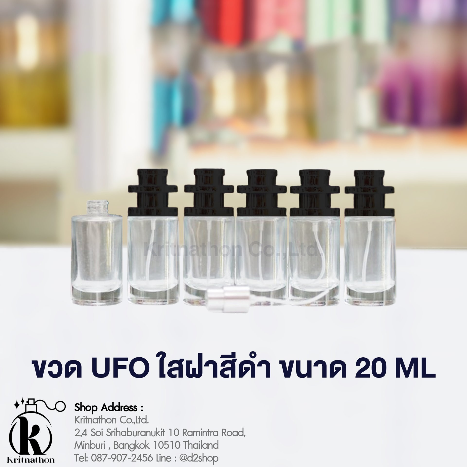 ขวดยูเอฟโอ (UFO) ใสฝาสีดำ ขนาด 20 ML