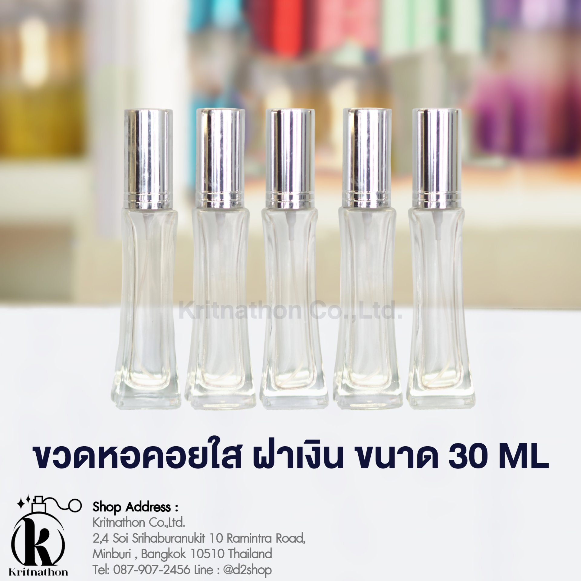 ขวดหอคอยใสฝาสีเงิน ขนาด 30 ML