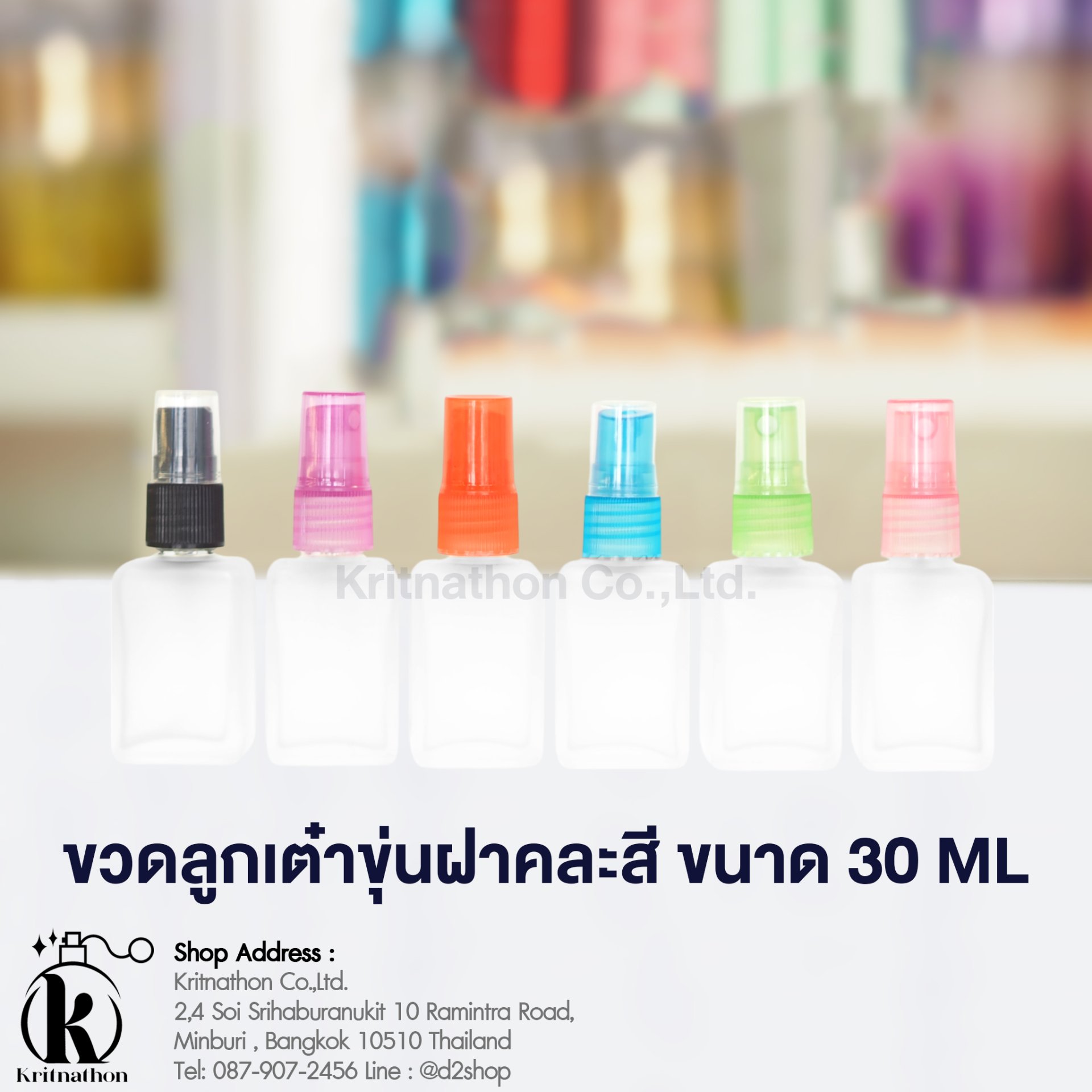 ขวดลูกเต๋าขุ่นฝาพลาสติกคละสี ขนาด 30 ML