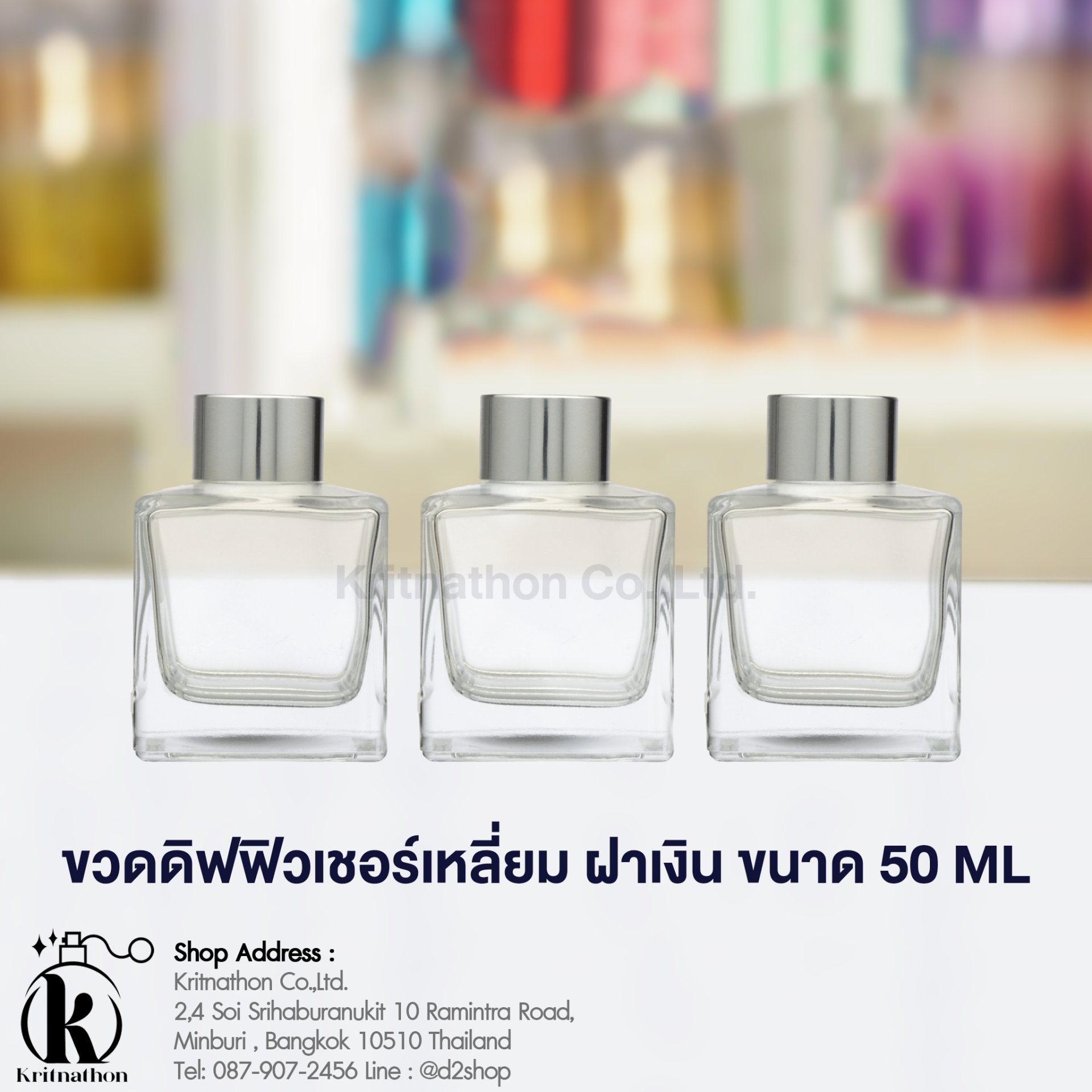 ขวดดิฟฟิวเชอร์เหลี่ยม ฝาสีเงิน ขนาด 50 ML